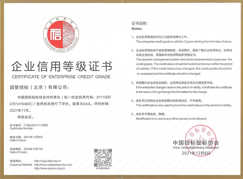 企業信用AAA等級證書